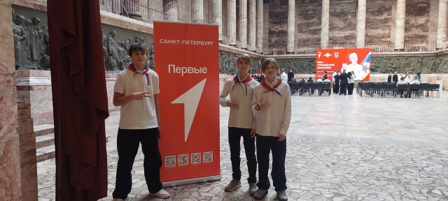Нашу школу под руководством координатора первичного отделения Движения Первых Татьяны Анатольевны Кузнецовой с гордостью представляли Сухарев Константин, Дубинин Роман и Волков Ратимир. Торжественное мероприятие прошло в Мраморном зале Этнографического музея. С напутственными словами к ученикам обратился Владимир Юрьевич Куличкин — Председатель Совета регионального отделения «Движения Первых» Санкт-Петербурга. Выборгский район представили ученики школы №453 имени Сергея Жукова, школы №112, школы №76, школы-интерната №33.