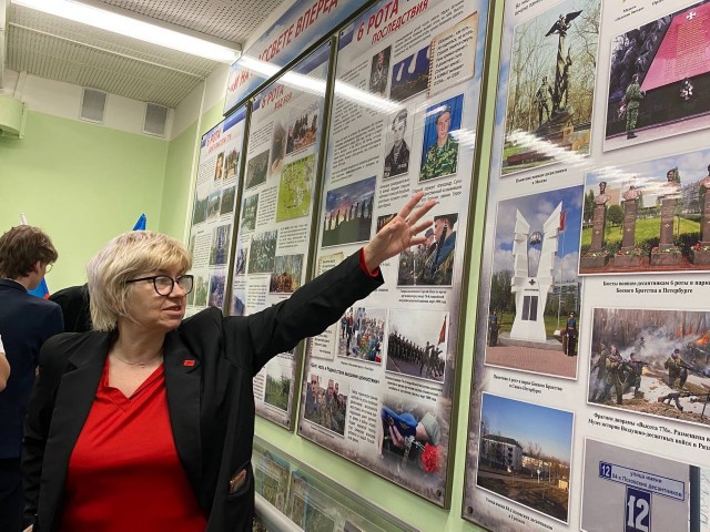 Также в школе открылась выставка, посвящённая ещё одному герою — Денису Сафронову. Её организовала активистка МОО СОЮЗ ОФИЦЕРСКИХ ЖЕН САНКТ-ПЕТЕРБУРГ Лен обл Юлия Сафронова — в память о погибшем при исполнении боевых задач в СВО.