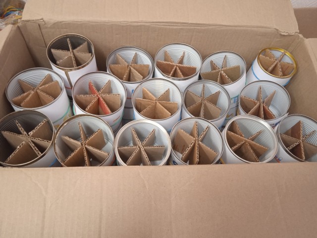 Ребята передали в организацию «СТАЯ» очередную партию заготовок для окопных свечей и шишки, используемые в качестве фитилей.