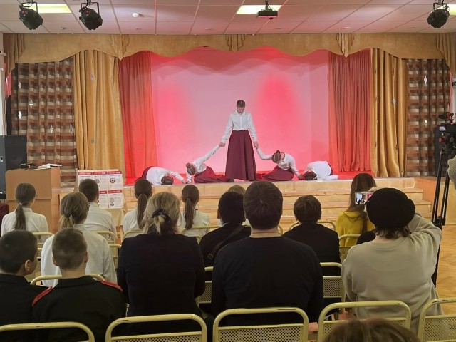 Мероприятие «Героями наша Отчизна сильна!», посвященное 23 февраля, в ГБОУ школе № 60 стало для учеников 5 А и 5 Б классов настоящим погружением в историю нашей Отчизны. Открыли мероприятие ученики школьного хора «Мы за мир», затем ребята представили хореографическую композицию «Женщины войны». Выступление школьных экскурсоводов стало мостиком, перенесшим ребят в прошлое, к подвигам и судьбам тех, кто ковал Победу.