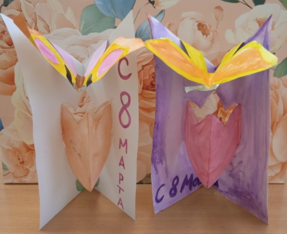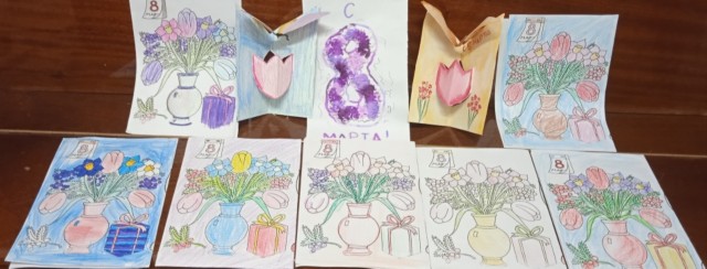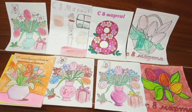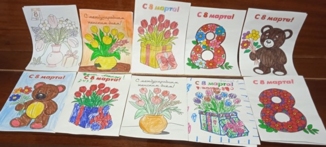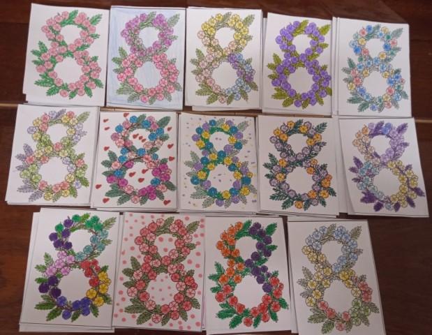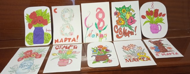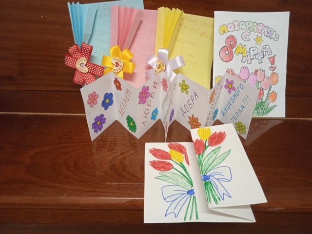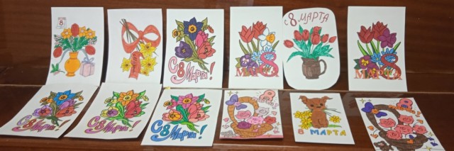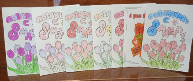 Ученики начальной школы сделали открытки для одиноких пожилых дам Социального дома №1 Выборгского района. Всего изготовлено 107 открыток.