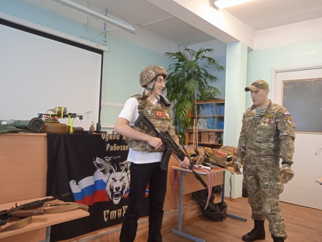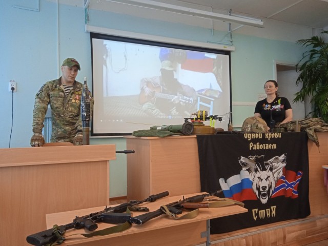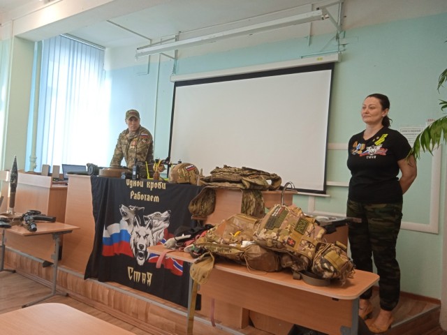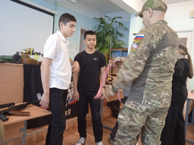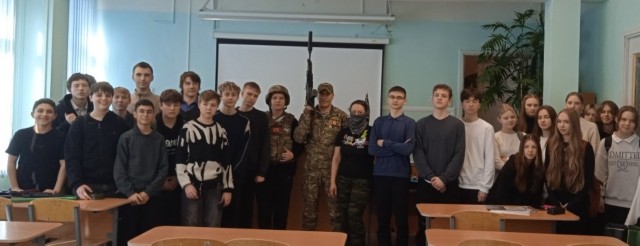11 марта 2026 года волонтёры Автономной некоммерческой организации Военно-патриотического воспитания граждан «СтаЯ» с позывными Роса и Кузьма провели для 8в и 8б классов Урок мужества «Крепкий тыл — крепкий фронт». Они рассказали о направлениях деятельности своей организации, об отправках гумпомощи на фронт и мирным жителям Донбасса, о современном вооружении российской армии. Были затронуты также вопросы оказания первой помощи (в частности, с помощью жгута), а также вопросы безопасности школьников в сети интернет.